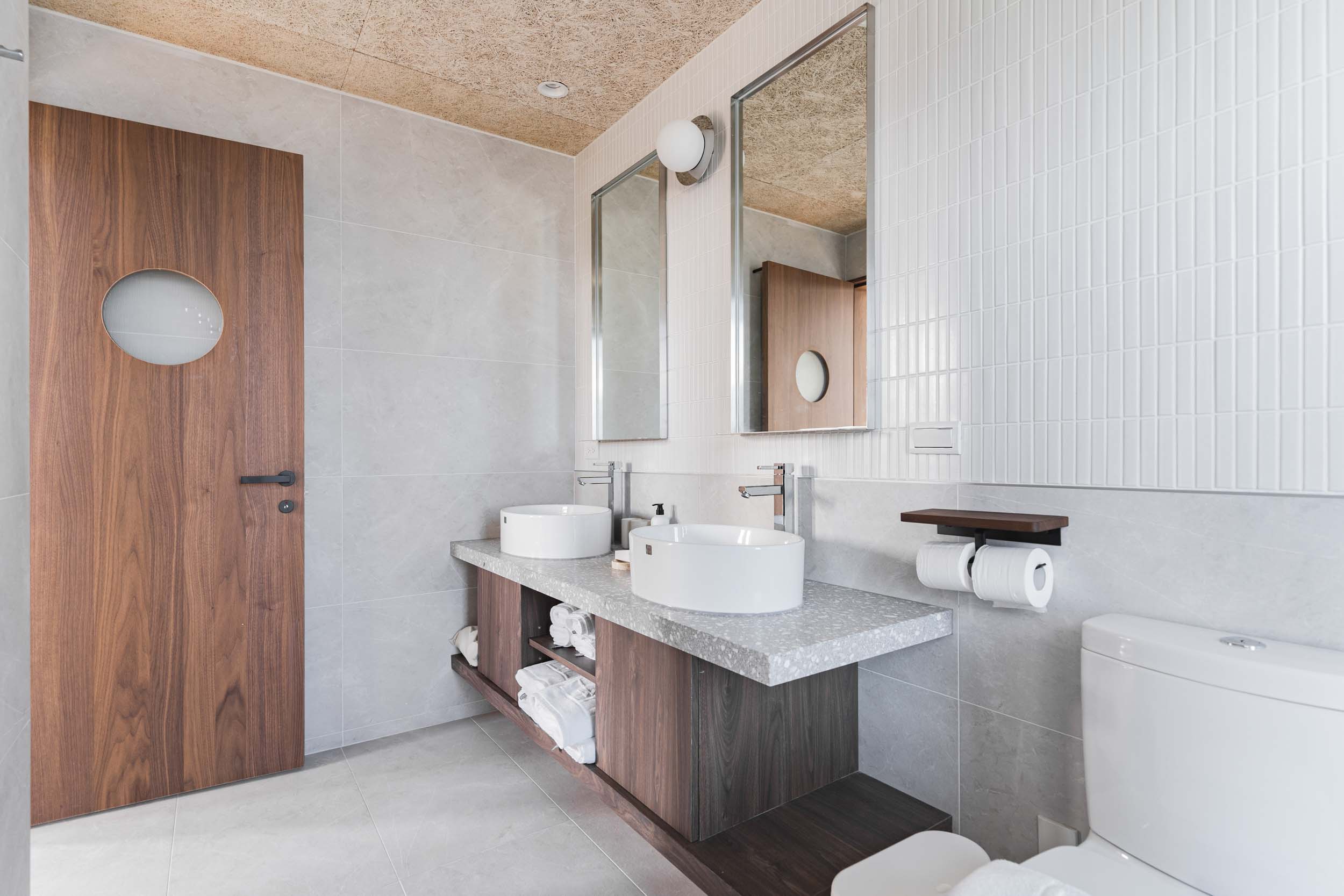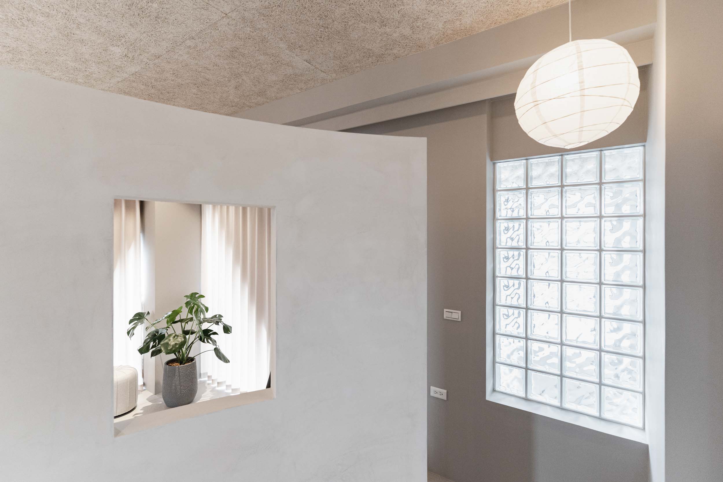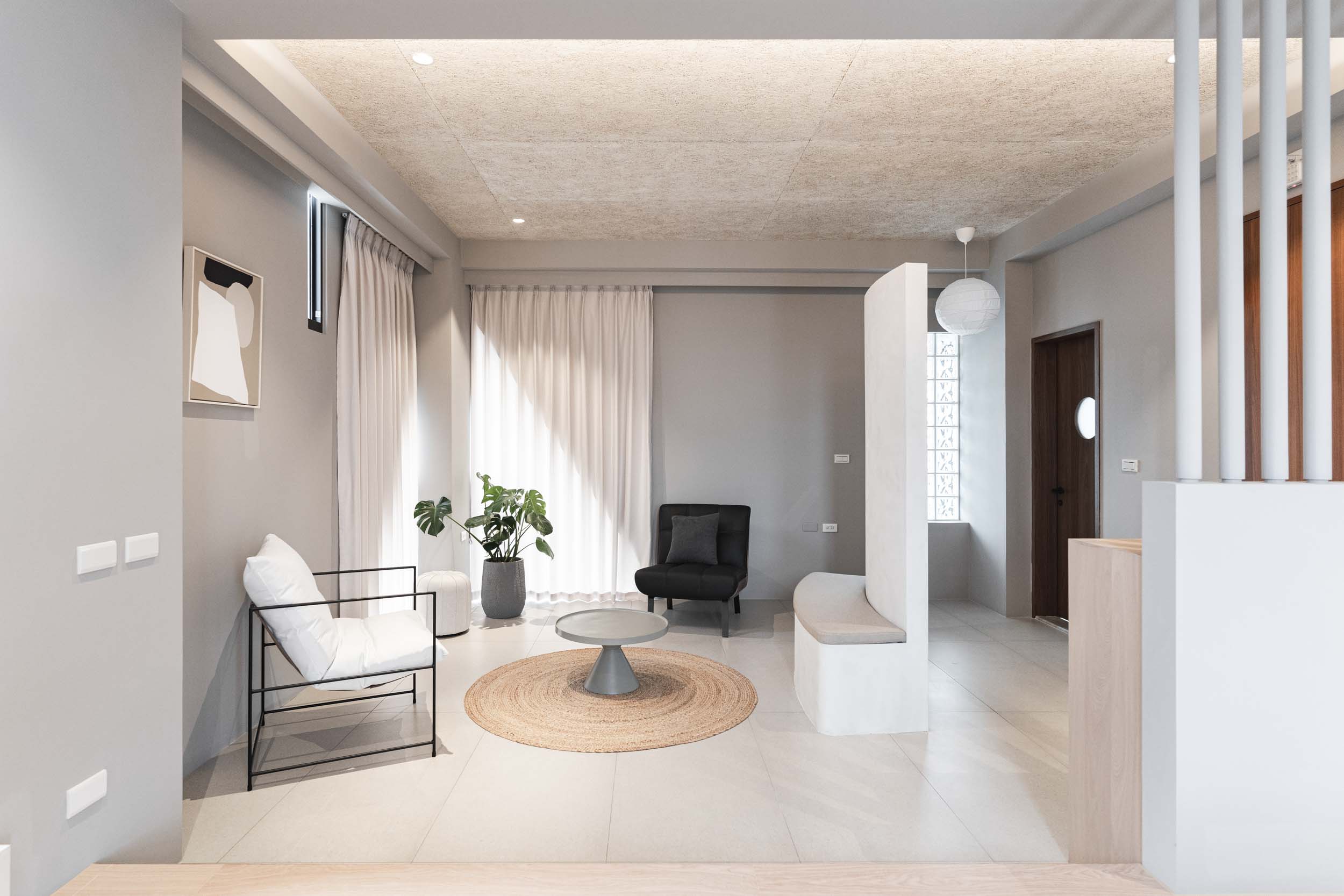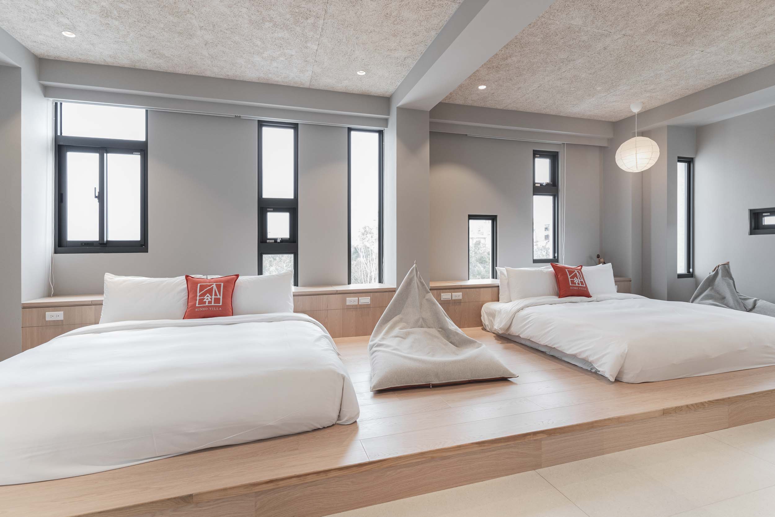 在進行民宿案的初步討論時,業主常問我民宿會是甚麼風格?我總是很難立即給出答案,因為風格可以是特色也可能是框架。通常我會從設計策略開始談,確保平面配置合理,例如走道的寬度、床的大小等等,櫃體材質和局部的木地板用淺色木料讓空間有溫暖自然感,牆面保留原有的水泥粉光,氛圍上低調質樸(後來跟業主討論後,牆面改成暖灰調的油漆,效果也很好),這些林林總總搭配起來,其實也說不上是什麼特定的風格,但民宿的雛形漸漸的在歷經無數設計考量及抉擇後,慢慢的被敲打成形了。