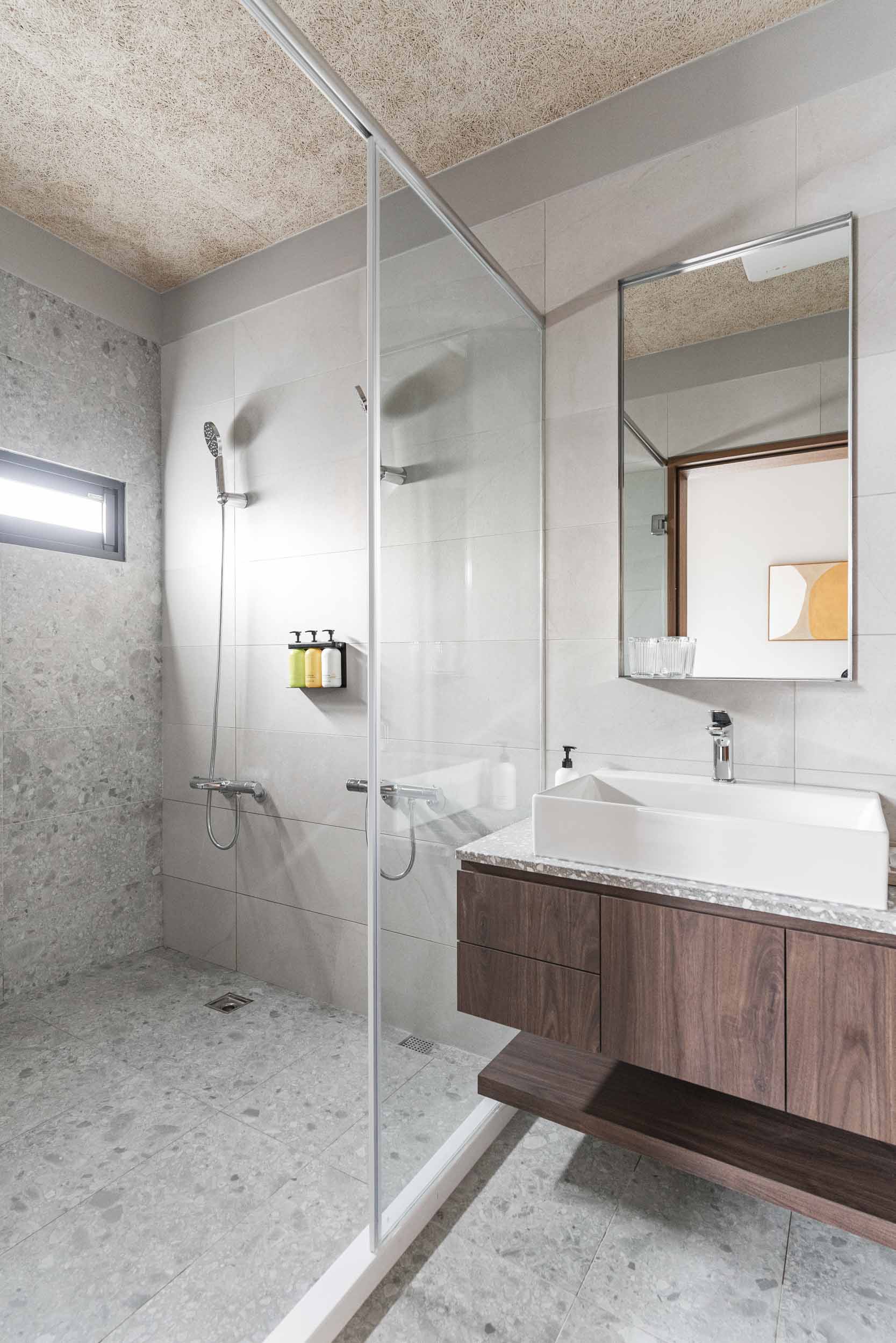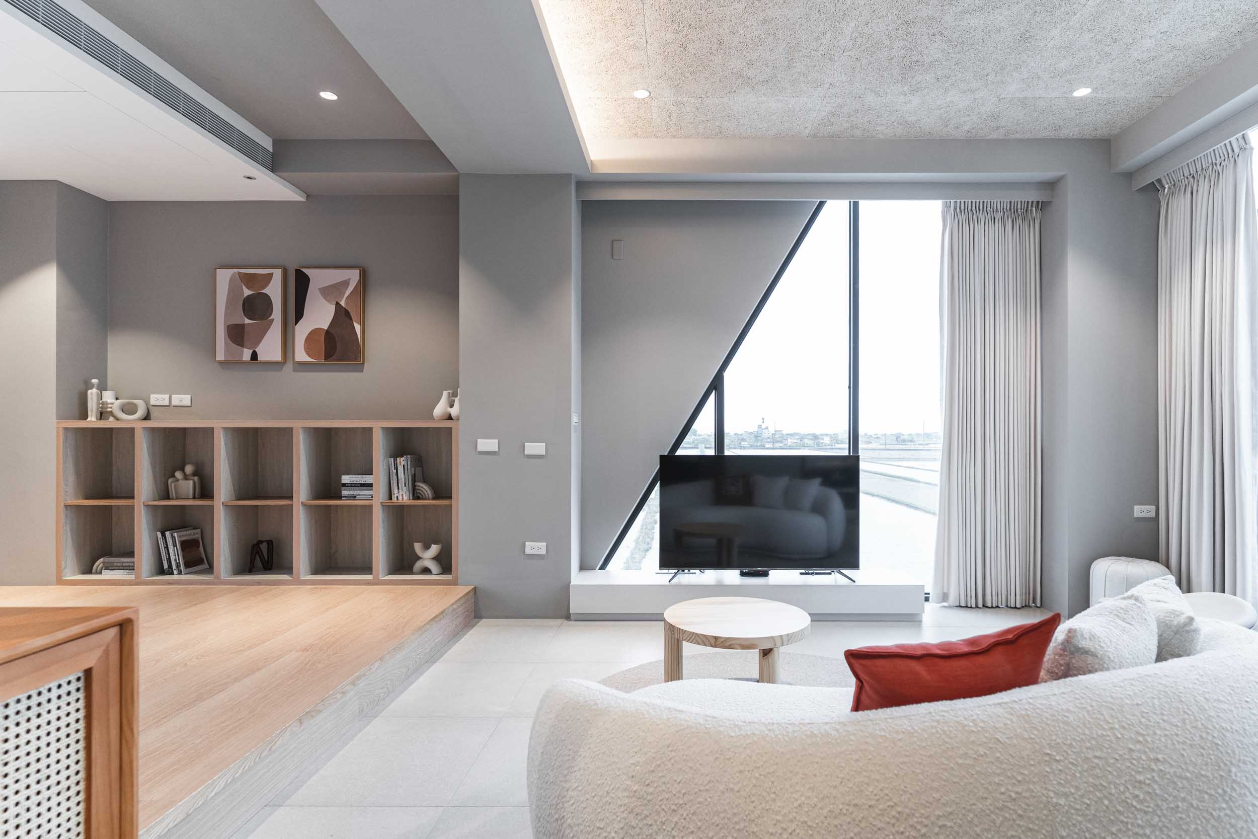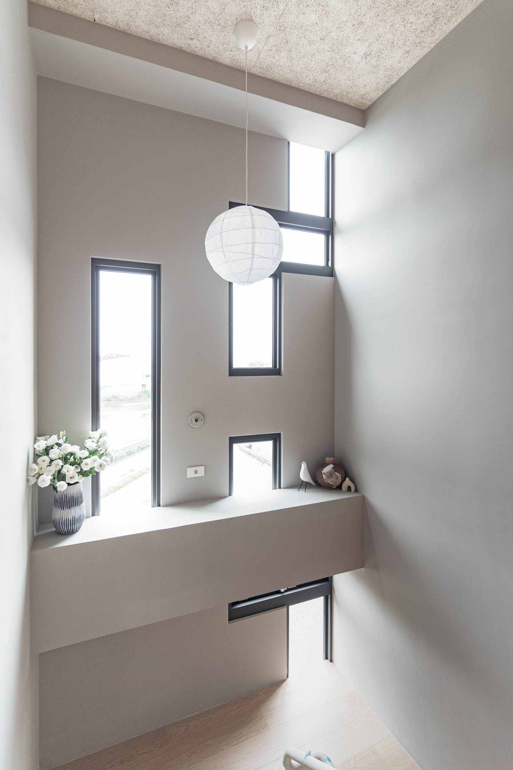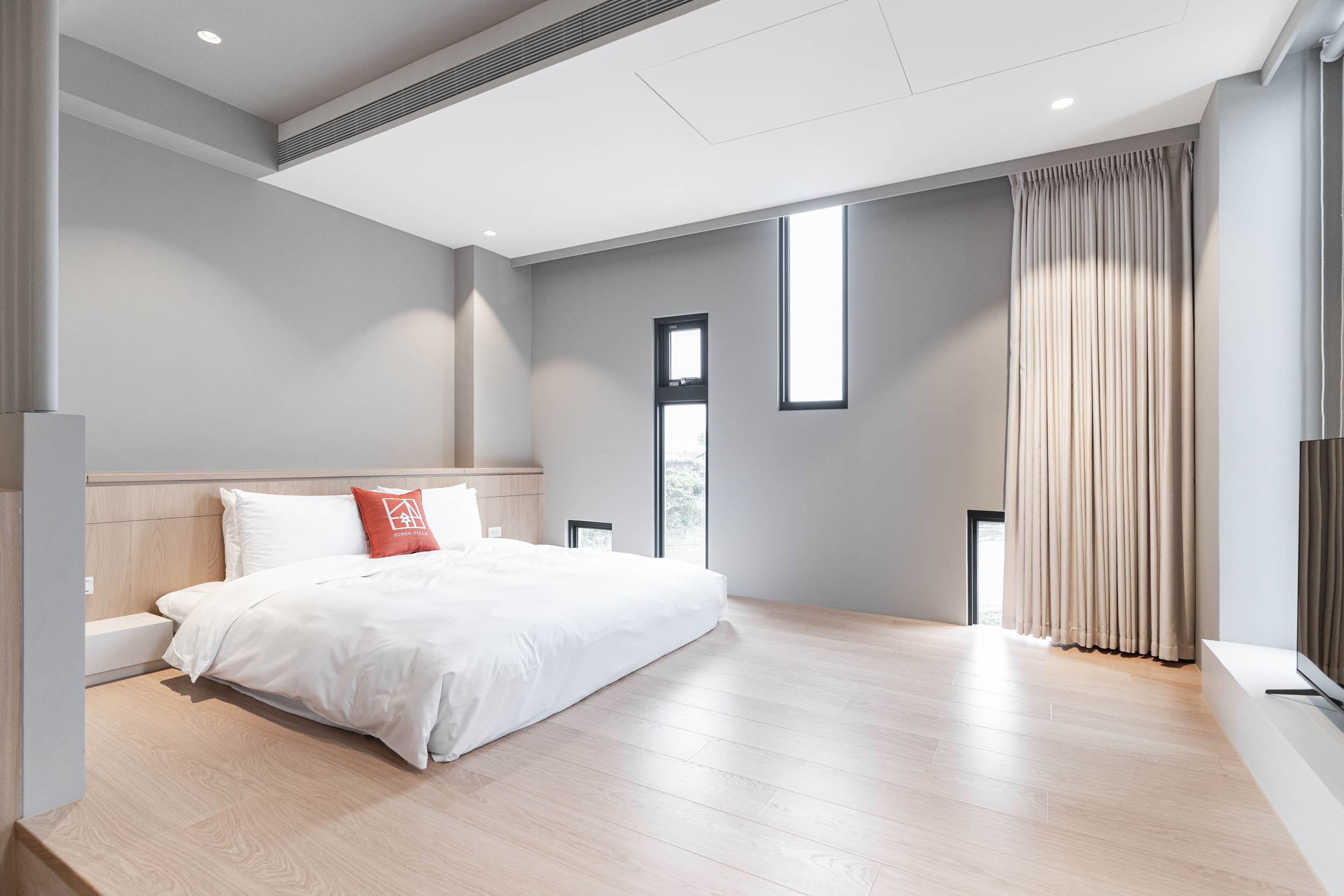 在進行民宿案的初步討論時,業主常問我民宿會是甚麼風格?我總是很難立即給出答案,因為風格可以是特色也可能是框架。通常我會從設計策略開始談,確保平面配置合理,例如走道的寬度、床的大小等等,櫃體材質和局部的木地板用淺色木料讓空間有溫暖自然感,牆面保留原有的水泥粉光,氛圍上低調質樸(後來跟業主討論後,牆面改成暖灰調的油漆,效果也很好),這些林林總總搭配起來,其實也說不上是什麼特定的風格,但民宿的雛形漸漸的在歷經無數設計考量及抉擇後,慢慢的被敲打成形了。